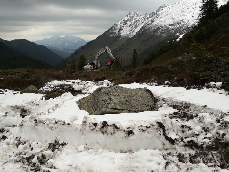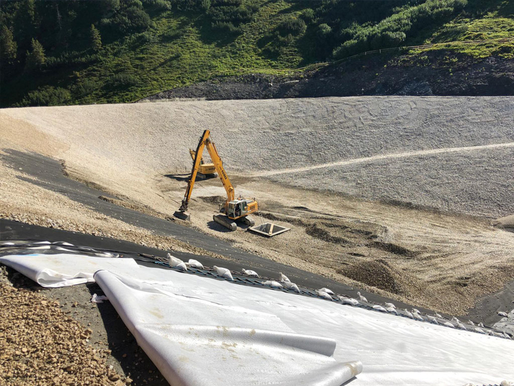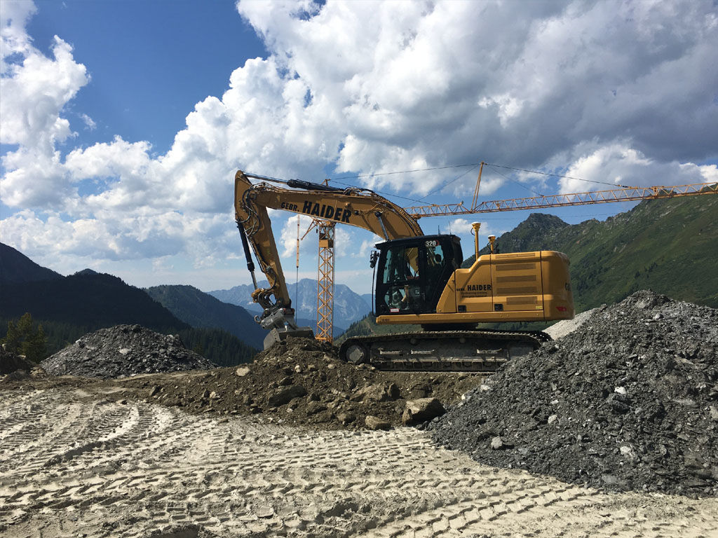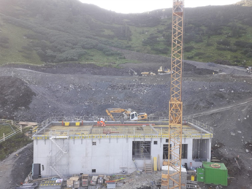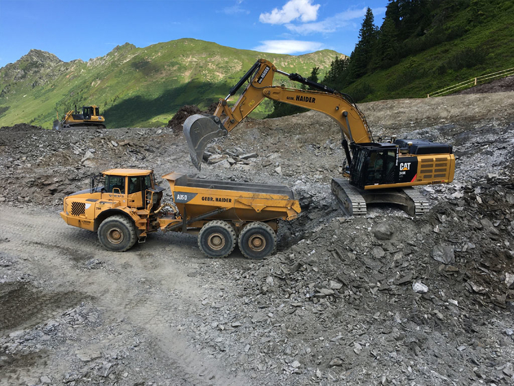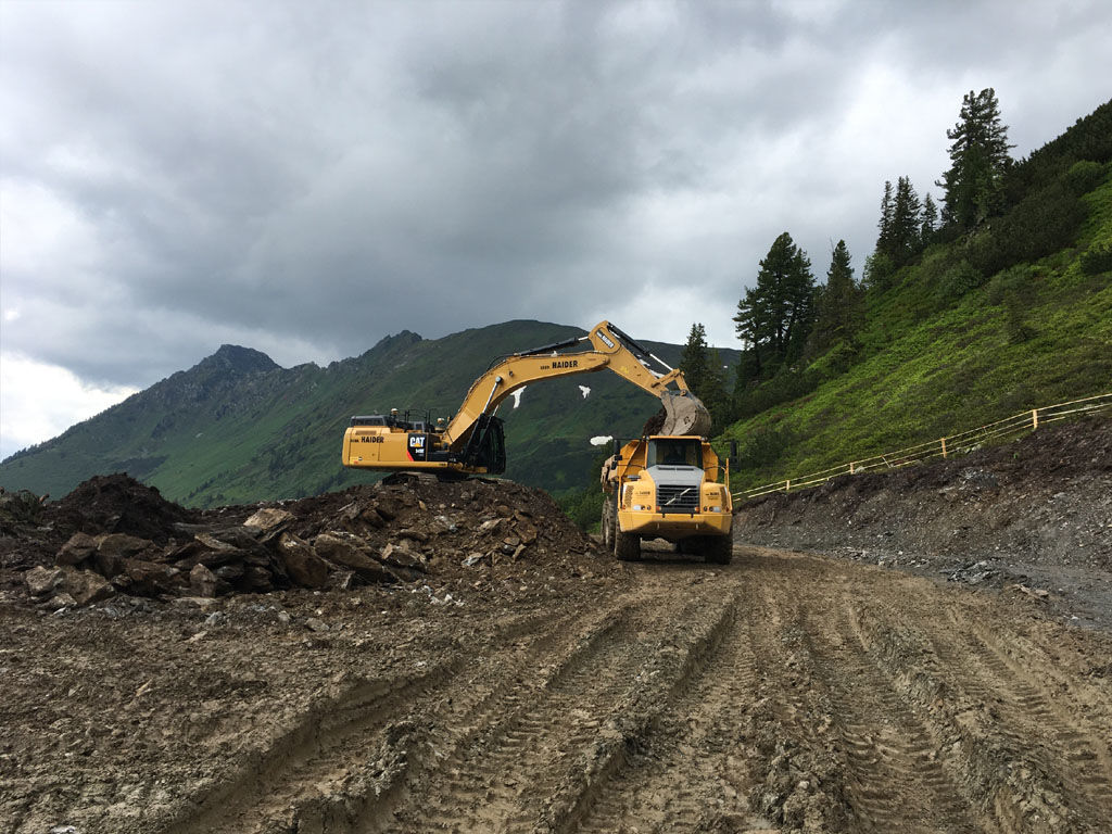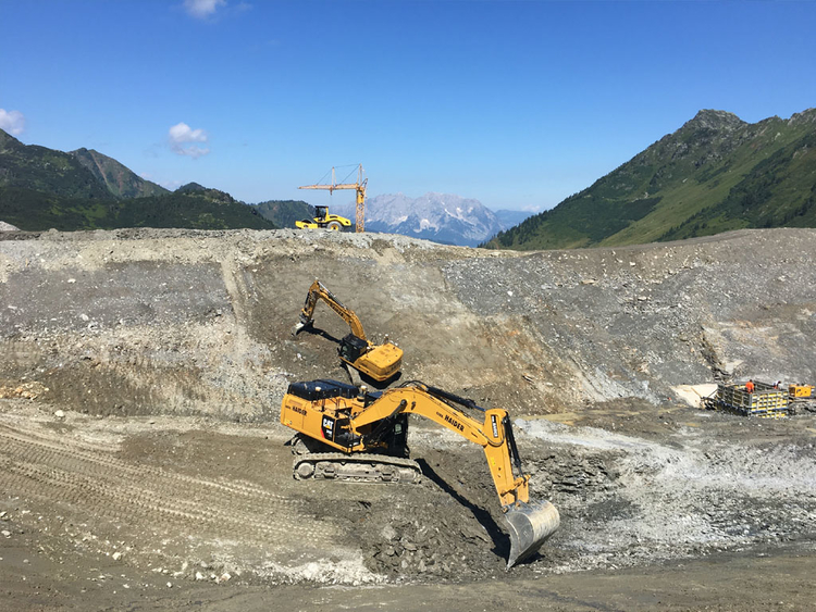 des Speichers Planneralm mit V- 50.000 m³. Die Bauarbeiten erfolgen grossteils durch GPS gesteuerte Baumaschinen der neuesten Generation wodurch eine effiziente Baudurchführung gewährleistet ist.