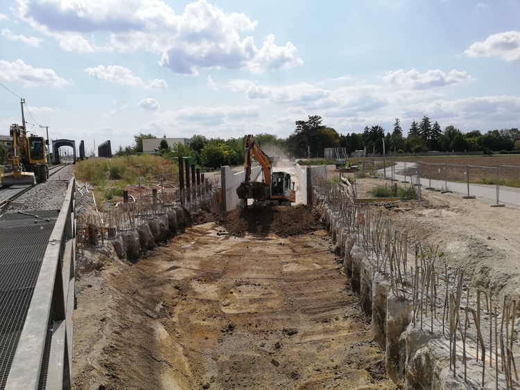 Die neue Trasse verläuft in diesem Streckenabschnitt in Dammlage bis zu 2,0 m über dem derzeitigen Gleisniveau.