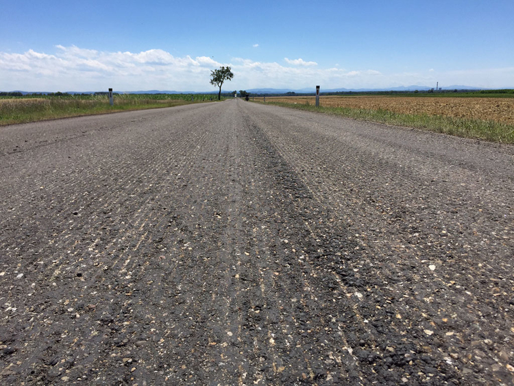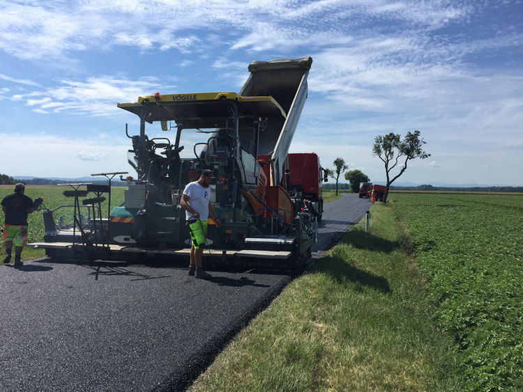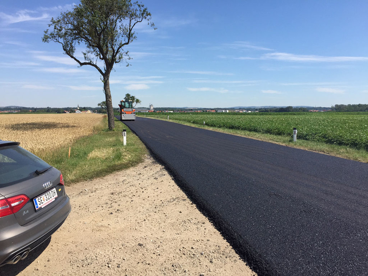 Asphaltierungsarbeiten auf der L 47 bei Absdorf.
