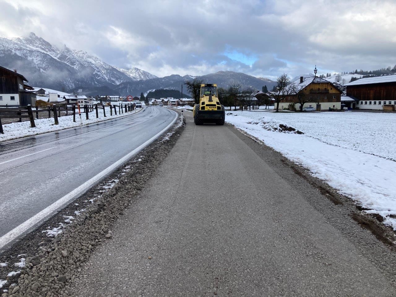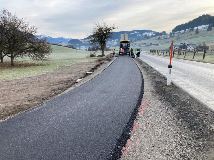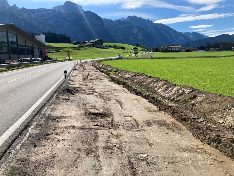 Die Bauarbeiten umfassen die Errichtung eines Geh- und Radweges, Errichtung eines Linksabbiegers, Sanierung von Teilen der Fahrbahn, die Herstellung eines Parkplatzes, Entwässerungsarbeiten, Kabelgrabungsarbeiten sowie die Fundamentherstellung für Wechselverkehrszeichen im Baubereich.